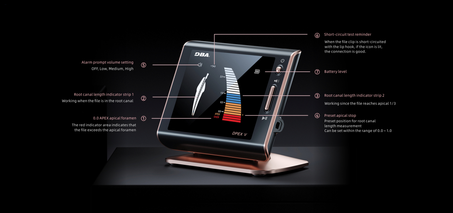 The DPEX V is the Fifth Generation Apex Locator from DBA, designed for accurate and simple electronic measurement of the root canal length in dentistry.