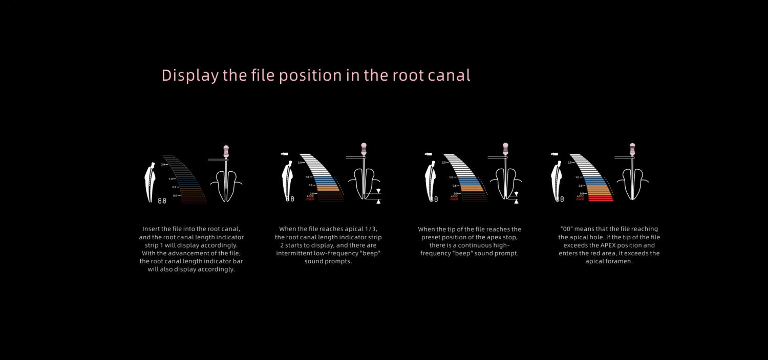 Continuous high-frequency "beep" when the tip reaches the preset position of the apex stop.