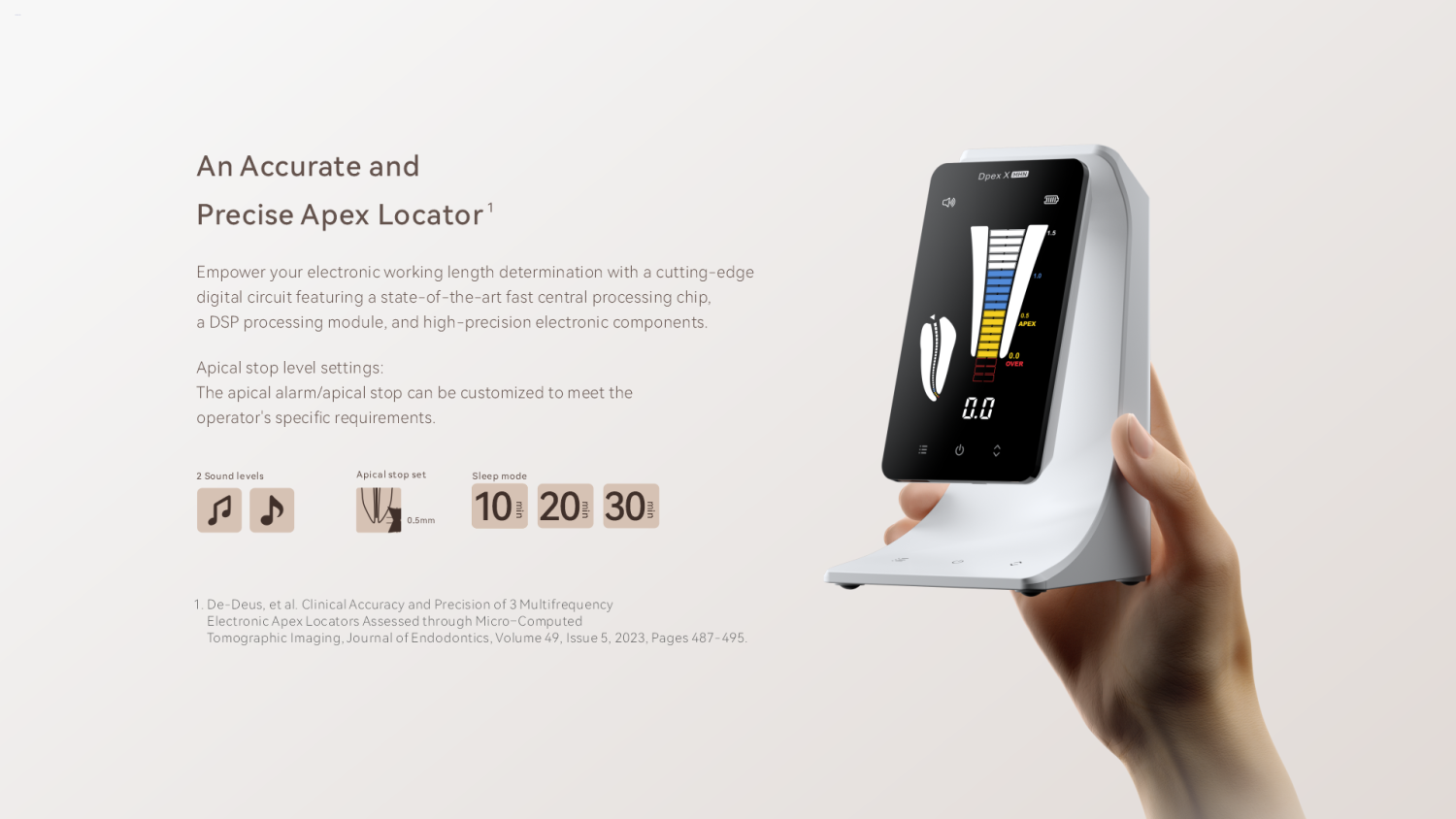 Introducing the DPEX V Apex Locator—the Fifth Generation device that defines the new standard for accuracy and simplicity in root canal treatment. Engineered with advanced digital intelligence, the DPEX V delivers reliable, stable, and consistent measurements, ensuring you treat with absolute confidence every time.