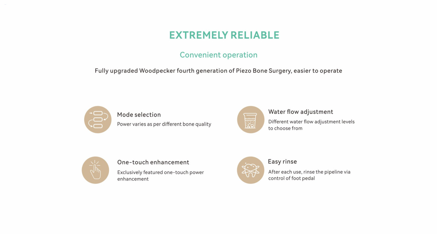 Dual Irrigation for Optimal Visibility: Maintain a clear field during apicoectomy with switchable internal and external irrigation. Effective cooling prevents thermal necrosis of bone and ensures you always have a clear view of the surgical site.
