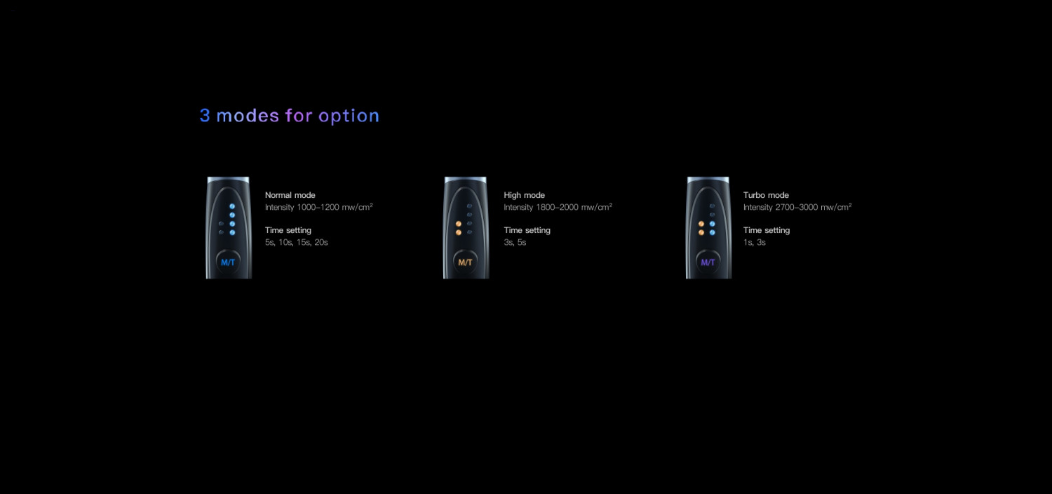 Four Curing Modes: The system offers multiple modes to adapt to various clinical needs: