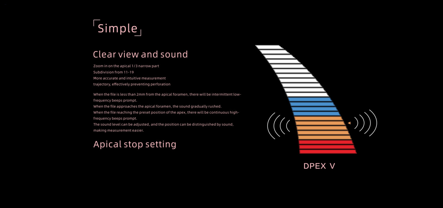 Continuous high-frequency "beep" when the tip reaches the preset position of the apex stop.