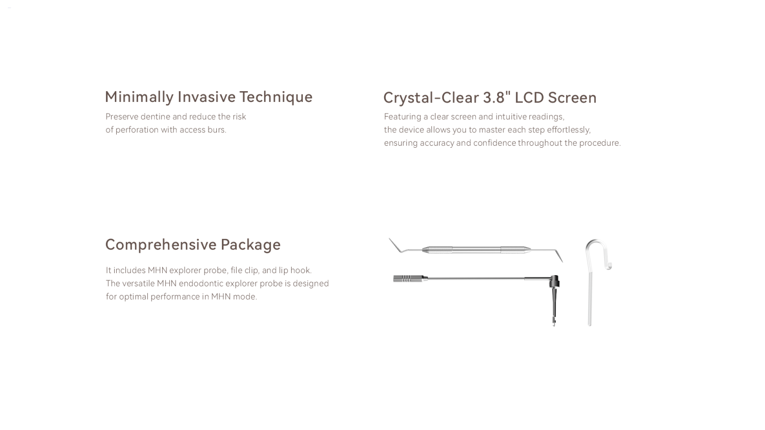 DSP Data Processing & Big Data: We've integrated a powerful DSP data processing system combined with clinical big data filing. This proprietary technology actively filters out environmental and operational noise, guaranteeing an accurate measurement even when the canal contains residual pulp, blood, or irrigation fluid.